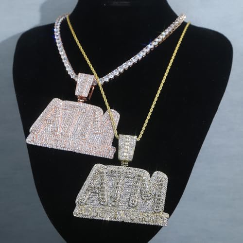 More information about 925 Sterling Silver Money Iced Out Necklace For Men - 14K Gold Filled Bling Letters ATM Addicted To Money Pendant Necklaces, AAA Zircon Money Chain, Iced Out Chain Hip Hop Jewelry