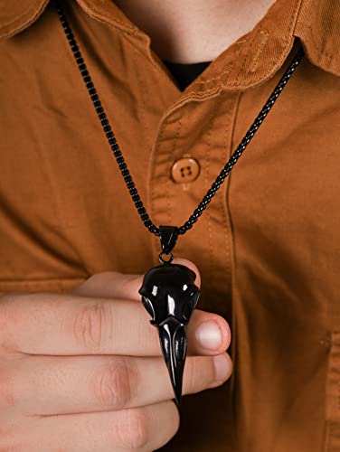 HAQUIL Stainless Steel Raven Skull Pendant Necklace, Box Chain, Gothic Punk Biker Raven Jewelry Gift for Men and Women 6