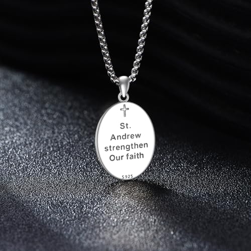 • Elegant Design: This Saint Andrew necklace features a classic oval design with an engraved relief of Saint Andrew on the front. The pendant measures 28mm in height, with the back engraved with "St. Andrew strengthen Our faith," showcasing a sense of sanctity and solemnity crafted from dark oxidized silver, making it suitable as a daily accessory.