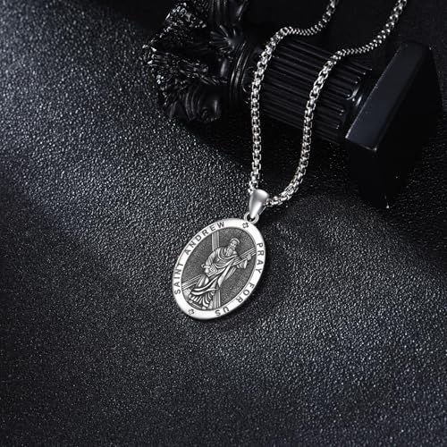 Saint Necklace 925 Sterling Silver Patron Saint Medal Pendant Amulet Protection Religious Jewelry for Men Women with 2.5mm 22"+2" Steel Chain (with Gift Box) 5