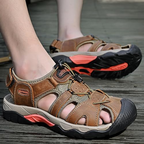 MILDSEVEN Large Size Men's Outdoor Hiking Sandals, Classics Closed Toe Backpacking Sandals, Fashion Breathable Sports Beach Shoes,11.5,Brown 6
