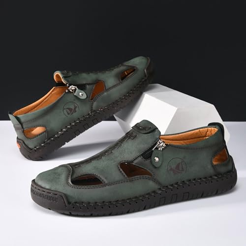 Mens Leather Sandals Hollow Closed Toe Summer Outdoor Casual Beach Shoes Casual Sports Sandals 5