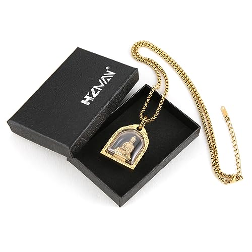 HZMAN Vintage Stainless Steel Tibetan Amitabha Buddha Pendant Mala Prayer Buddhist Necklace Lucky Amulet 3