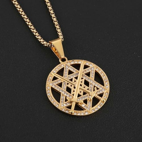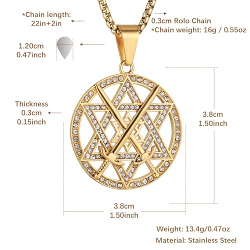 HZMAN 18K Gold Plated Seal of Solomon Hexagram Necklace for Men Stainless Steel Crossed Swords Star of David Talisman Pendant Jewelry Gift 6