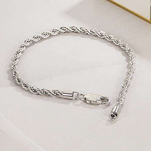 Men Diamond Cut 925 Sterling Silver 3mm Twist Rope Chain Bracelets Women Bangle Clasp Rope Box Chain link 6.3" 6.7" 7" 7.5" 8" 8.5" 9" Cuff Jewelry Gifts 5