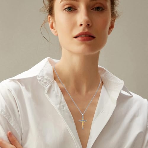 Crucifix Necklace for Men 925 Sterling Silver Jesus Cross Necklace Crucifix Cross Pendant Protection Jewelry for Men Women 1