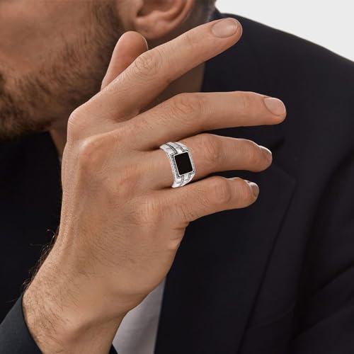 Square Genuine Black Onyx Signet Ring for Men 925 Sterling Silver Real Black Onyx Pinky Ring for Husband Dad 5