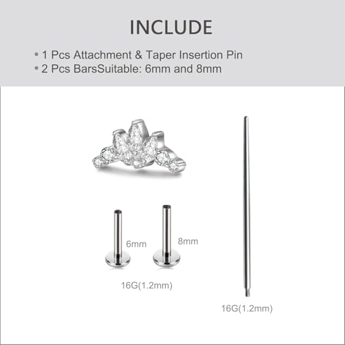 • Value Pack:1Pcs G23 Titanium Stud Earrings Top and two backings of different lengths(6mm / 8mm ),1 Pcs Taper Insertion Pin. Best 16g Tragus Conch Jewelry. Good Gift Choice for Your Girlfriends, Wife, Mother and Friends on Anniversary, Birthday, Party, Thanksgiving Day, Christmas.