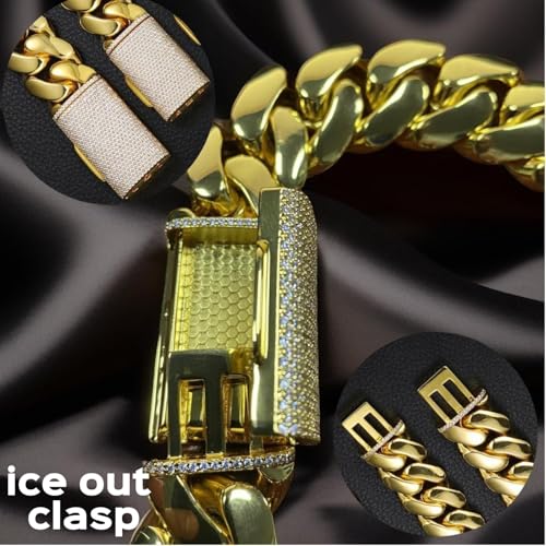 • Handmade, hand-polished,Hand-set:--- Our chunky gold necklace and clasps are entirely handcrafted to ensure the tightest and most seamless connections. Each chain is meticulously polished by hand in 6 stages, resulting in an exceptionally bright, genuine gold surface. The stone of this mens gold chain is 5A Cubic Zirconia(have 54 facets and are hand-set),without the use of glue