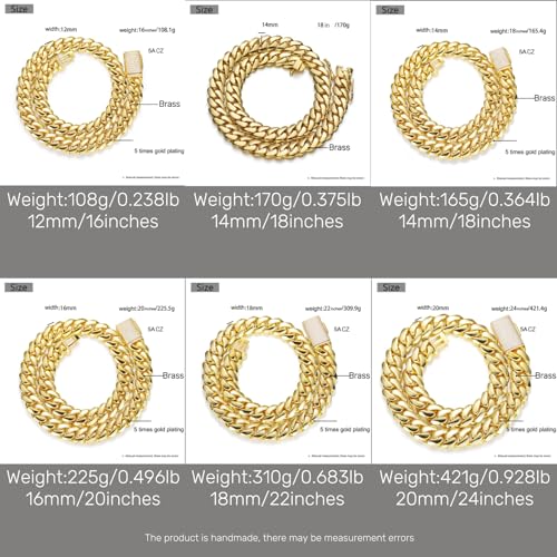 More information about Brass Cuban Link Chain for Men,14K 18K Real Gold Plated Mens Chunky Miami Cuban Chains,10mm 12mm 14mm 16mm 18mm 20mm 22mm,7in 8in 9in Bracelet,16in 18in 20in 22in 24in Necklace