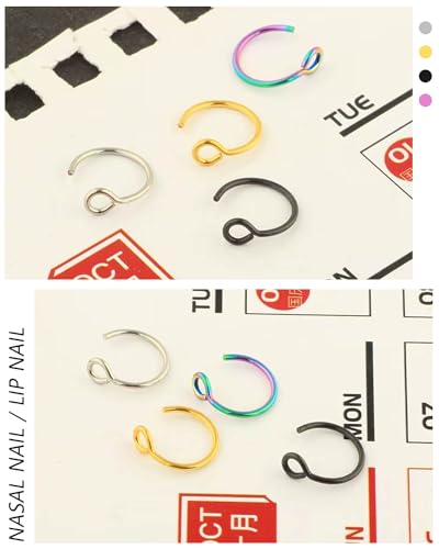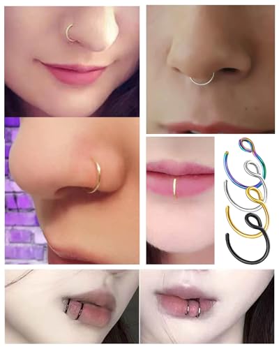 • [Proper Sizes] Fake percing jewelry gauge: 20G (0.8 mm);Inner Diameter: 8 mm ( 5/16 In); Hoop nose rings are malleable enough to adjust to the size of your nose, ears and lips, easy to put in for a perfect fit.