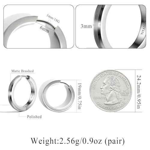 HOT ! TGNEL Large Mens Titanium Hoop Earring for Sensitive Ears, Fashion Brushed Titanium Earrings Hoops for Men Bevel Silver