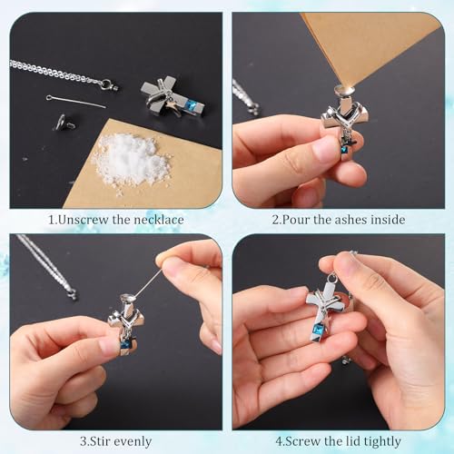 16 Pcs Urn Necklace for Ashes Waterproof Stainless Steel Carved Ashes Locket with 8 Filling Kit Heart Cylinder Cross Cubic Fish Hook Jewelry for Ashes with Wing Diamond for Men Women 5