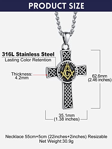 Bandmax Mens Pendant Necklace Stainless Steel Masonic Necklace for Men Freemason Pendants with 22" Spiga Chain Masonic Gifts for Father Husband 5
