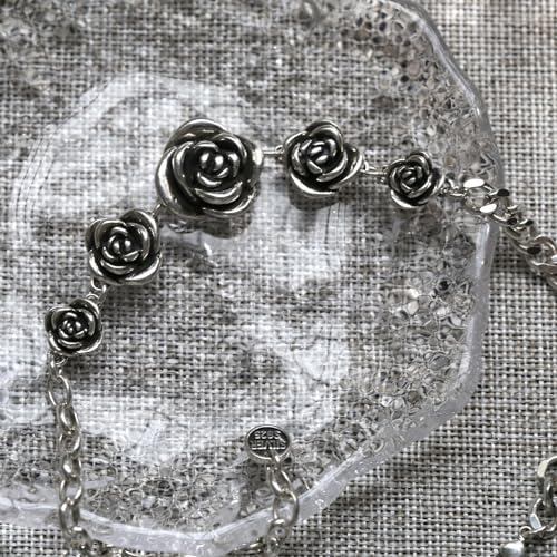 Vintage Rose Flower Link Chain Bracelet Sterling Silver Women Bracelet Stainless Steel Rose Bracelet Jewelry 6
