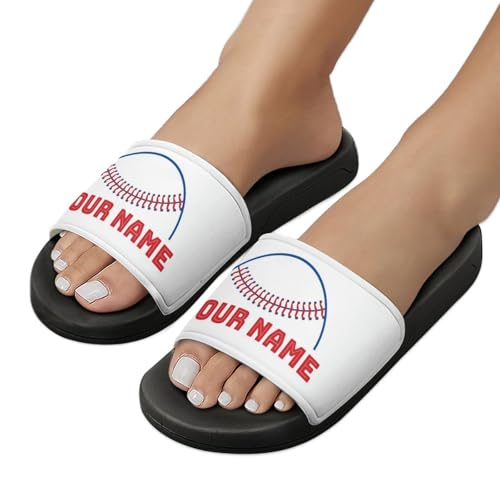 Custom Sports Slides Personalized Slippers - Baseball Sandals Quick Drying Softball Slippers Indoor Outdoor,Gifts for Men Youth Boy (Black,Style 42) 6
