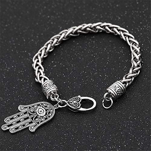 AILUOR Hamsa Hand of Fatima Silver Bracelet - Evil Eye Protection Silver Tone Alloy Charm Jewelry Lucky Success Pendant Friendship Handmade Bracelet Men Women 7