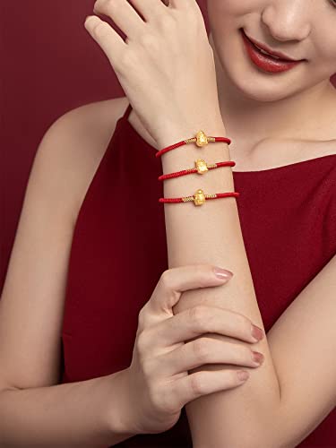 24K Gold Bracelet Chinese Zodiac Charm Bracelets Adjustable Red String Chain Lucky Link Good Luck Jewelry Snake Dragon Animal Beads Protection Braided Rope Stackable Bangle Unisex Gifts for Women Men 3