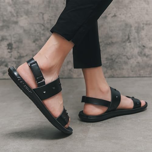 Men's Studded Sandals Black Leather Sandals with Adjustable Back Straps Summer Casual Beach Comfort Slides 6