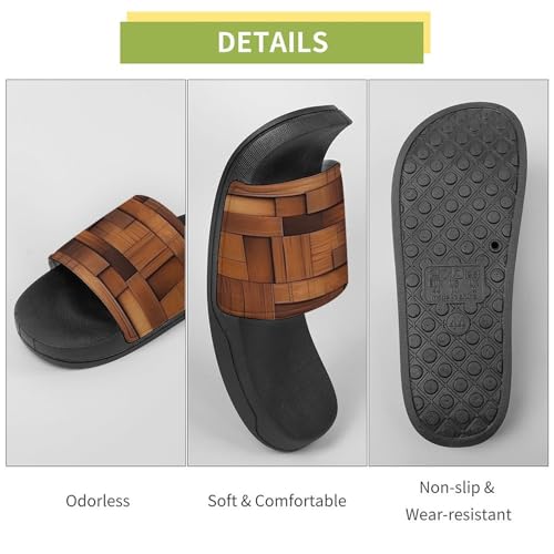Brown Wooden Wall Non Slip Slides Sandals for Women Men Quick Drying Shower Shoes for Bathroom Pool Beach 6