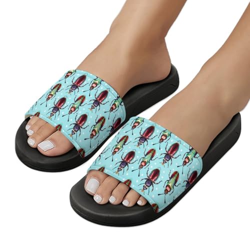 HOT ! Beetles and Insects Non Slip Slides Sandals for Women Men Quick Drying Shower Shoes for Bathroom Pool Beach
