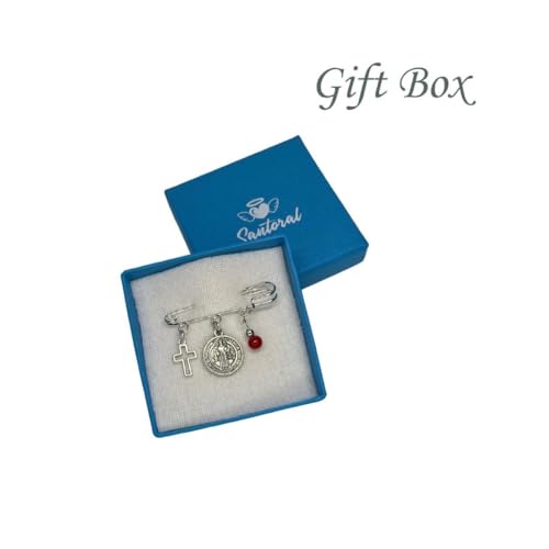Religious Brooch with Murano Gel Beads and Charms - Silverplated - Gift for Birthdays, Valentine's, Christmas, Mother's Day, Comes in Gift Box with Prayer 1