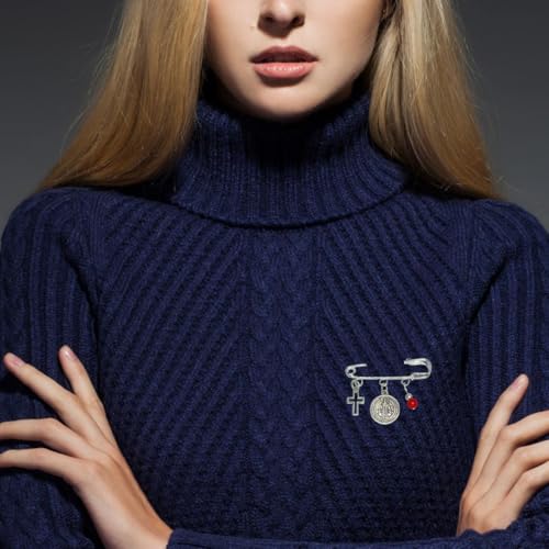 Religious Brooch with Murano Gel Beads and Charms - Silverplated - Gift for Birthdays, Valentine's, Christmas, Mother's Day, Comes in Gift Box with Prayer 7
