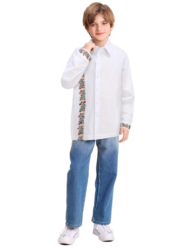 Mexican Shirts for Boys Guayabera Traditional Embroidered Kid Cinco De Mayo Fiesta Collared Long Sleeve 6