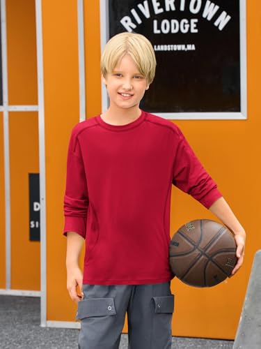 Haloumoning Boys Long Sleeve Shirts Kids Crewneck Oversized Casual Tees Fall Fashion Shirt Tops 5-14 Years 6
