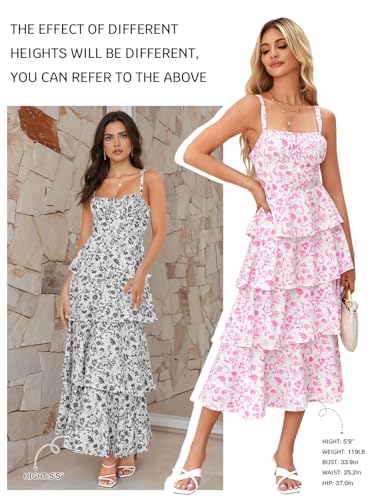 Wenrine Womens Summer Floral Maxi Dresses Sleeveless Spaghetti Strap Tie Back Ruffle Tiered Flowy Dresses 6