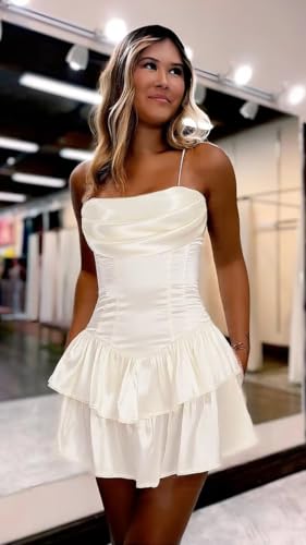Strapless Homecoming Dresses Short Ruffles Tiered Satin Formal Prom Party Dress with Straps 4