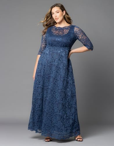 HOT ! Kiyonna Women’s Plus Size Leona Lace Gown, Maxi Dress Formal Evening Ball Gown with Side Pockets for Wedding Guest