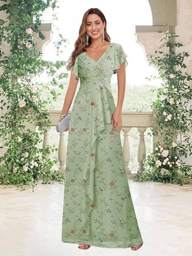 More information about GUKARLEED Women’s Ruffled Mother of The Bride Dresses with Sleeves Beading Floral Long Ruched Formal Dress for Wedding Guest