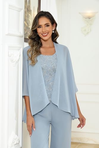 • Designs: 3 Piece Mother of The Bride Pant Suit Lace Chiffon 3/4 Sleeve Wedding Guest Outfit with Jacket