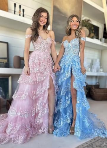 • Features: this tiered prom dresses for teens is tulle tiered, lace appliques, long with slit, corset/lace up, off the shoulder,sweetheart, a-line, full lined,homecoming dress, graduation dress, prom dress,cocktail dress,party dress, ball dress, formal dress