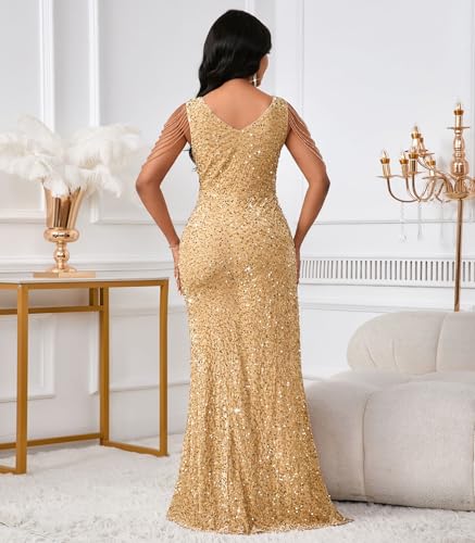 Cololura Women Sexy Elegant Sequin V Neck Tassel Mermaid Bodycon Formal Party Gowns Evening Maxi Dress 6
