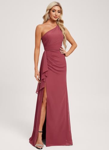 More information about Women's One Shoulder Long Bridesmaid Dresses with Silt 2025 Pleated Aline Formal Evening Dress PU146