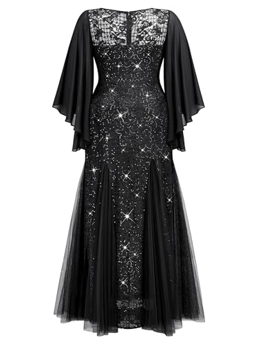 • Features: Attractive Sequin Lace Design,Scoop Neck, Femine Tulle Mermaid Hemline, Flowy Flutter Sleeves, Empire Waist,Zipper up Back,Slim Fitting,Floor Length Maxi Dress