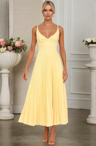 • FEATURES: PSAISY satin bridesmaid dresses for women with spaghetti straps, pleated, V neck, sleeveless, ankle length, slim fit. Lace up back allow you to adjust the dress to fit. Just right shows your unique feminine charm