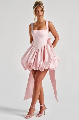 • Features: Soft satin, a-line, dress with bow, corset,square neck, mini,short, built-in bra, lace up back. satin short homecoming dress with bow,puffy short prom dresses for women,a bold short puff-ball dress,creating a puffy and eye-catching silhouette, completed with detachable bow