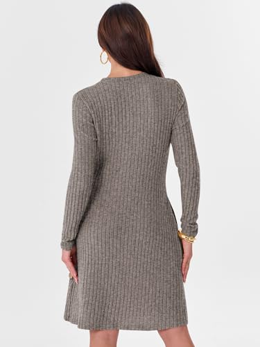 More information about ANRABESS Womens Long Sleeve Ribbed Knit Sweater Dresses 2025 Fall Winter Casual Lounge Short Tunic Dress with Pockets Buttons