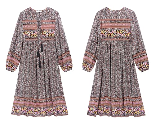 R.Vivimos Women's Long Sleeves Floral Print Retro V Neck Tassel Casual Bohemian Midi Dresses 6