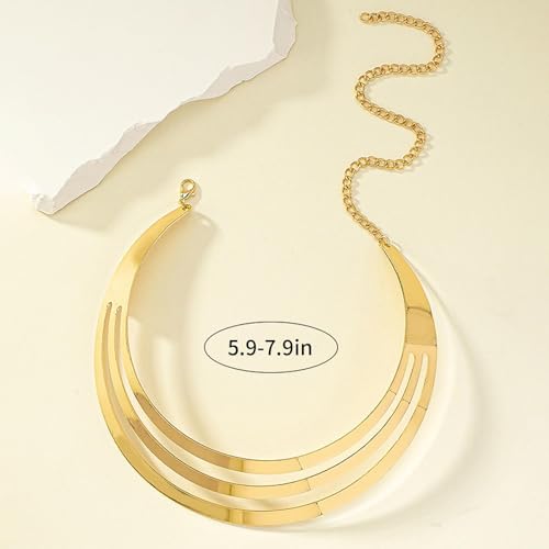 Chunky Gold Necklace Gold Statement Necklace for Women Dainty Gold Choker Necklace Gold Chunky Necklace Gold Chain Charm Necklace Exaggerated Ethnic Big Statement Necklace Gold African Tribe Wide Metal Choker Jewelry 3