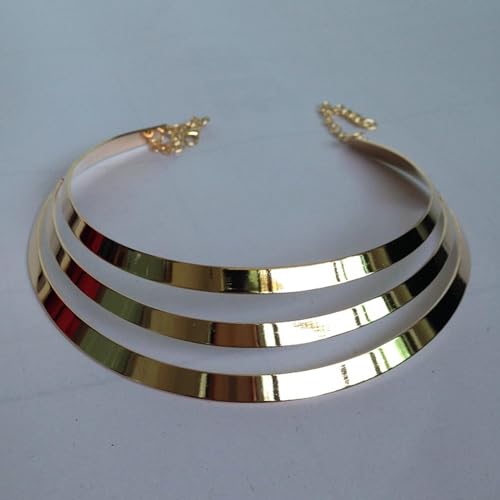 Chunky Gold Necklace Gold Statement Necklace for Women Dainty Gold Choker Necklace Gold Chunky Necklace Gold Chain Charm Necklace Exaggerated Ethnic Big Statement Necklace Gold African Tribe Wide Metal Choker Jewelry 5