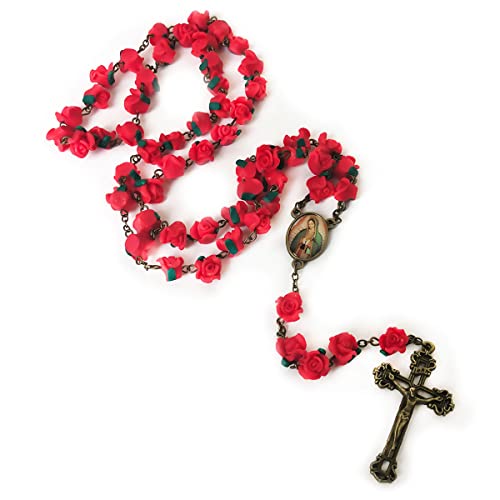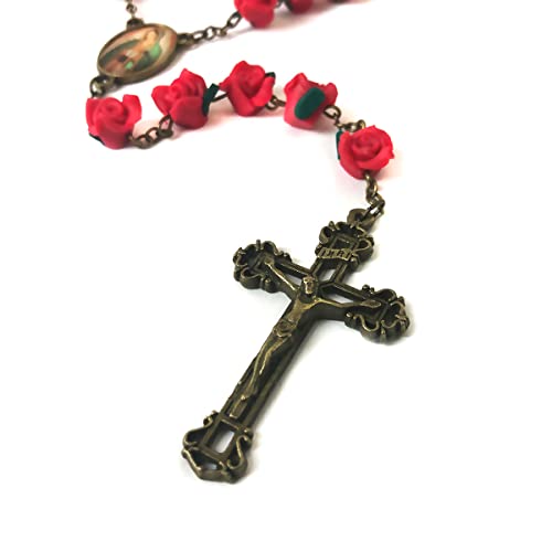 Our Lady of Guadalupe Red Rose Garden Rosary - Rosary Beads Catholic for Women - Catholic Gift - Antique Bronze Crucifix 1