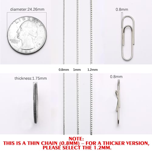 HOT ! Italian 1.2/1/0.8mm 925 Sterling Silver Chain for Women, Solid Box Cable Rope Station Necklace Chains, Nickel-Free & Hypoallergenic, Thin & Dainty & Sturdy, Perfect for Pendants & Everyday Jewelry