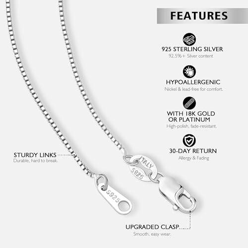 • Hypoallergenic: This silver box chain for women is meticulously crafted from genuine 925 sterling silver. Silver is naturally hypoallergenic, free of nickel and lead, ensuring you can wear it daily with confidence and comfort. It's the perfect choice for those with sensitive skin.