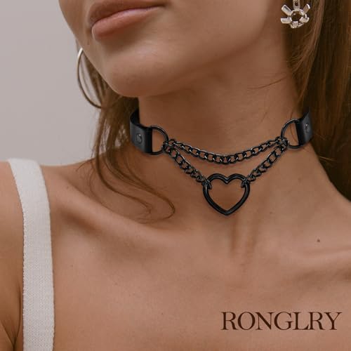 HOT ! Ronglry Leather Choker Necklace for Women Black Heart Chain Choker Punk Goth Sexy Chokers for Women Adjustable PU Collar Gothic Jewelry Accessories