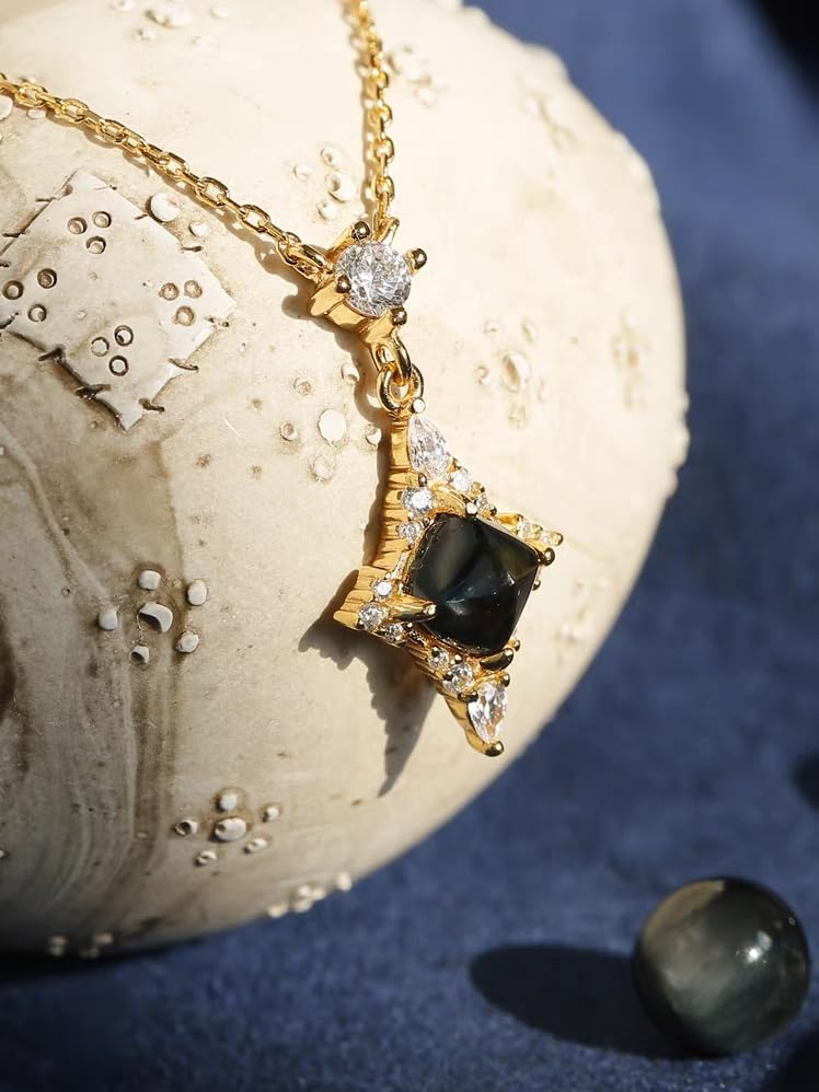 HOT ! Kemstone Star Necklace Gift for Her – Roche Limit Celestial Jewelry | 925 Silver Gold-Plated with London Blue Topaz, Birthstone Jewelry for women 18"