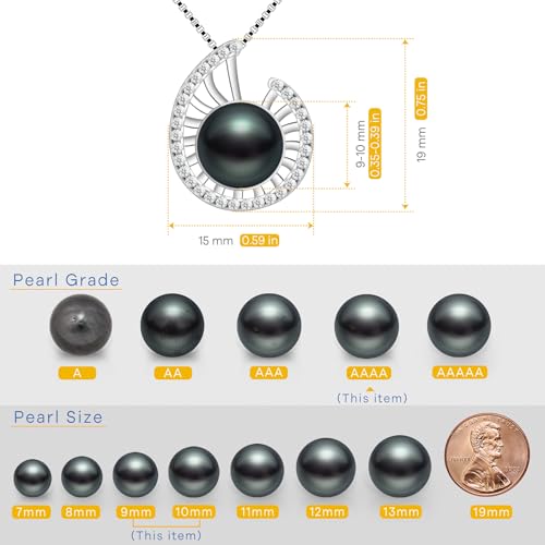 Lucky Conch Tahitian Black Pearl with Moissanite Pendant Necklace, 9-10MM AAAA Pearl Gifts for Women Wife Wedding Birthday Anniversary Valentines 6